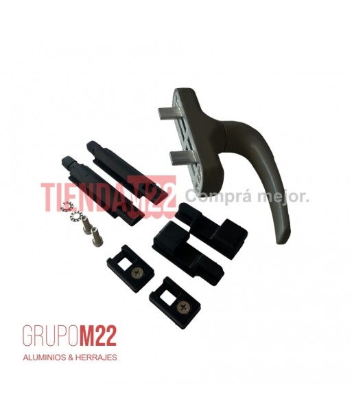 Cremona ambidiestra, con mango con opción de bloqueo mediante llave, rotación a 90° (hoja practicable) o 90° y 180° (oscilo batiente) y tope de posición en apertura y cierre.