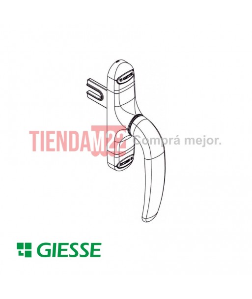 Cremona ambidiestra, con mango con opción de bloqueo mediante llave, rotación a 90° (hoja practicable) o 90° y 180° (oscilo batiente) y tope de posición en apertura y cierre.